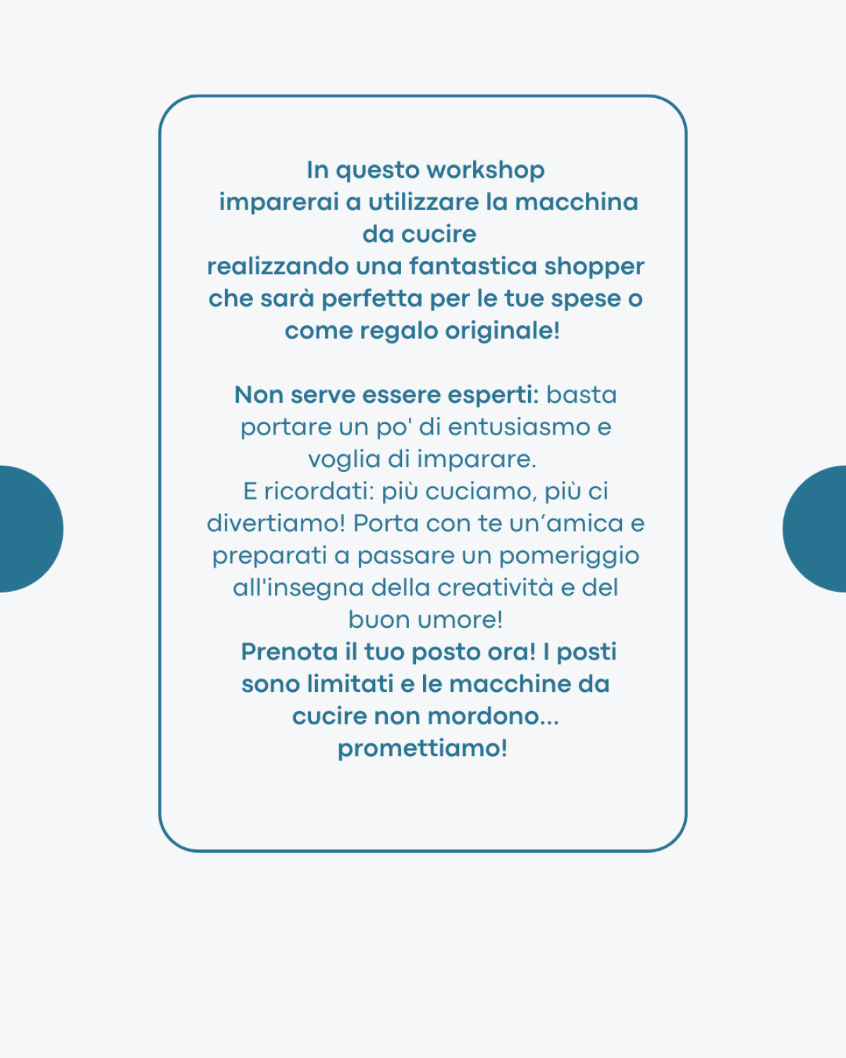 Prenota il tuo posto ora! I posti sono limitati e le macchine da cucire non mordono… promettiamo!