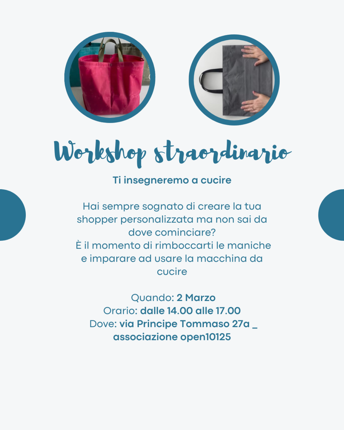 E ricordati: più cuciamo, più ci divertiamo! Porta con te un’amica e preparati a passare un pomeriggio all'insegna della creatività e del buon umore!