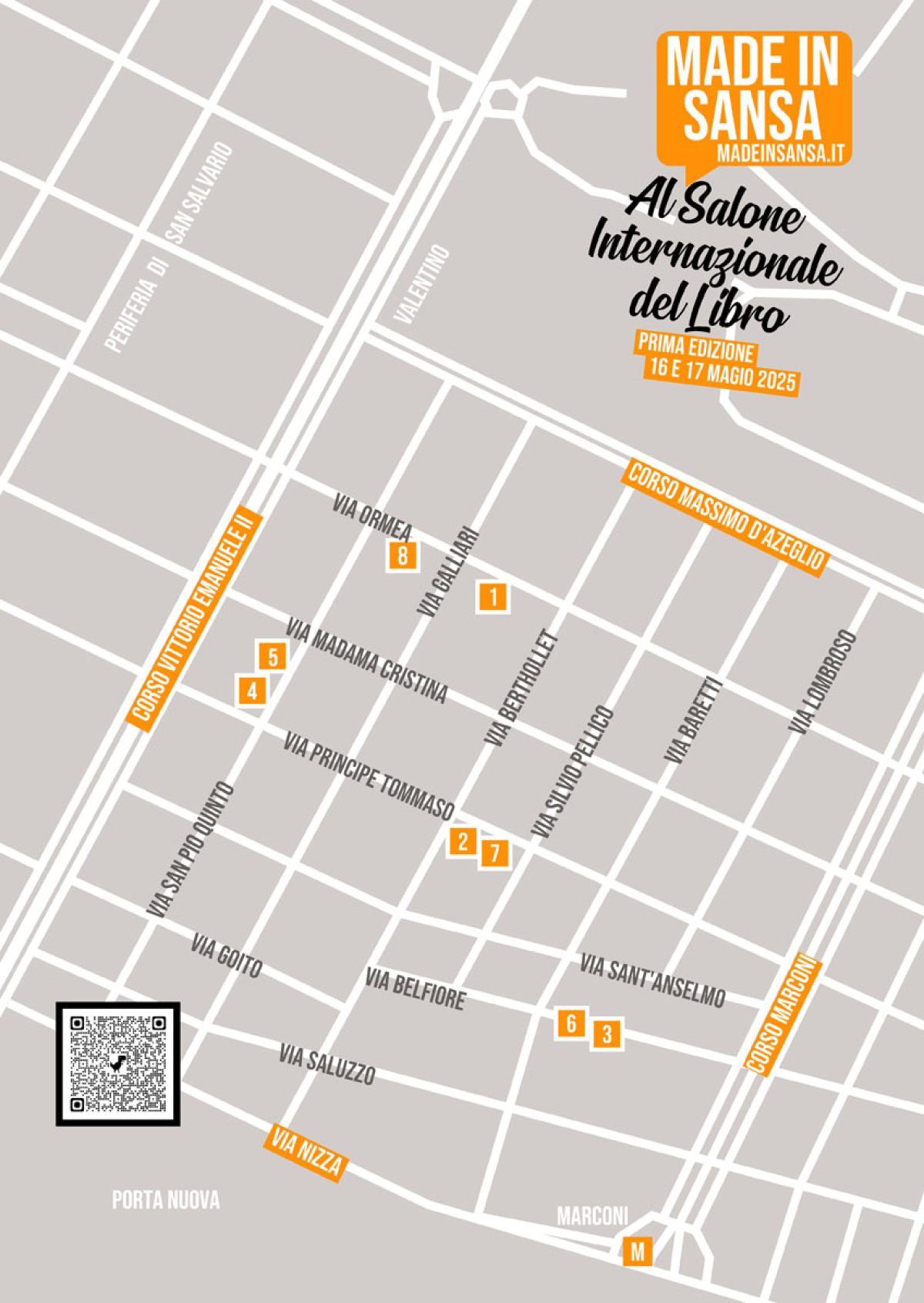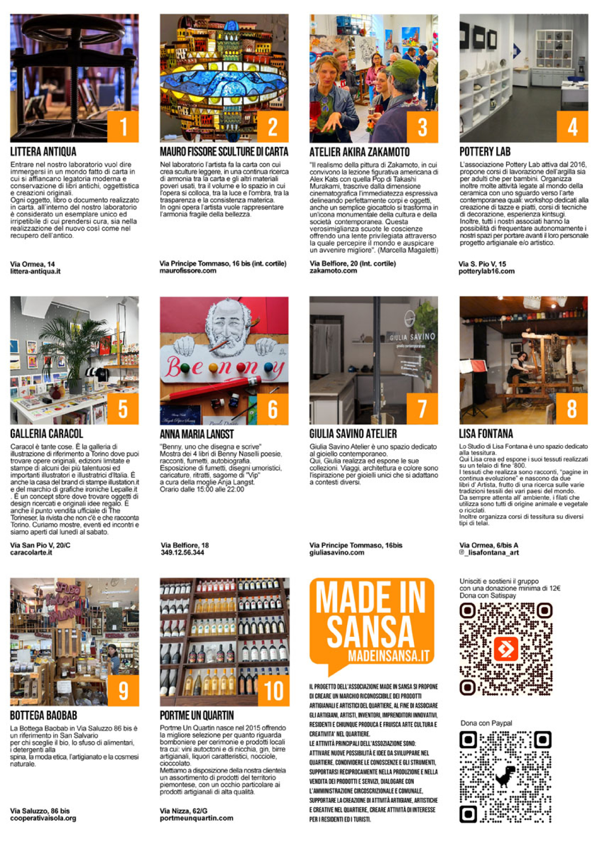 Gli studi in negozi e i laboratori di MADE IN SANSA, nell'ambito del programma del salone off, rimangono aperti Venerdì 16 e Sabato 17 Maggio fino alle 24:00, per accogliere i visitatori del salone del libro e un gruppo di lettori che si muoveranno per leggere a tutti i propri libri preferiti, tra i seguenti spazi aderenti:
